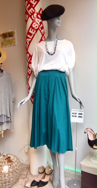 フレアロングスカート💕 新作、鮮やかなエメラルドグリーンのスカートです(*´∀`)♪ バッグが長めのデザインで、女らしさをアピール出来ますよ〜⤴︎⤴︎💓✨✨ 写真のようなプルオーバーと合わせても…☘️✨✨ プルオーバー ¥5,973- スカート ¥9,612- 2017年8月19日