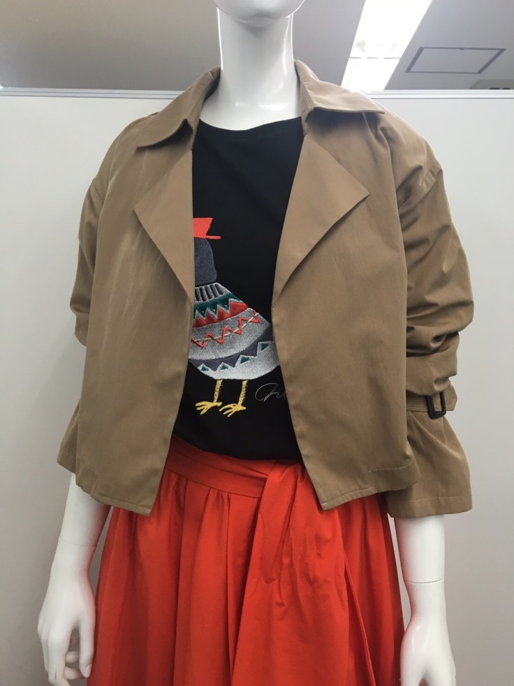 こちらが トレンチコートパーツのショートジャケットです 引き続き、2017秋冬もボリュームのボトムスがトレンドです そんな時にショートジャケットはお役立ちなのですよねぇーーーー トレンチコート ショートジャケット ロングジレの 3点で18000円💓 お見逃しなくーーーー 2017年8月20日