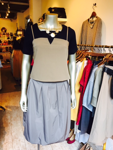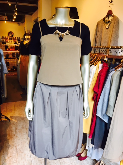重ね着アイテム バックリボンビスチェです🎀🎀 パンツに合わせてもカッコよく決まりますよ👍 ネックレスなど、アクセサリーでも雰囲気が変わりますね😊 バックリボンビスチェ¥9,612 カットソー¥7,452 スカート¥10,584 ネックレス¥3,672 ネックレス¥5,184 iPhoneから送信 2017年9月11日