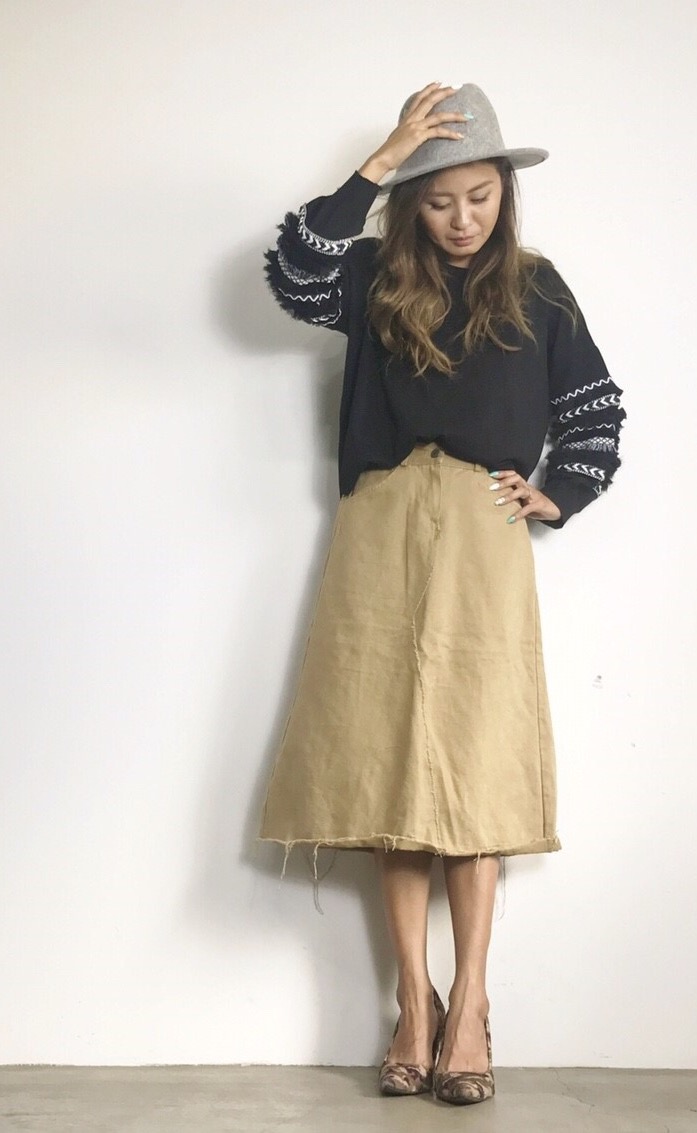 アシンメトリースウェード調スカート💓 スウェード調の生地感が素敵なデザインスカートです💓 ブラウンとグリーンのら2カラーです ウェストにはゴムが入っているので、着心地も楽チンですよぉ〜 2017年10月11日