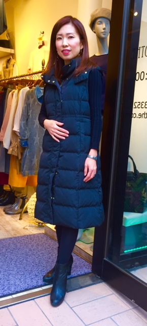 ノースリーブ・ダウン🍂🍁 軽くて暖かいダウンベストが入荷しました。😆💓💓💓✨ 上質なハンガリー製ダウンで、ゴールドのジップがオシャレ感をアップします❣️⤴︎⤴︎(o^^o) 他に、グレーベージュもあります。 ダウン ¥29,160- 2017年10月18日