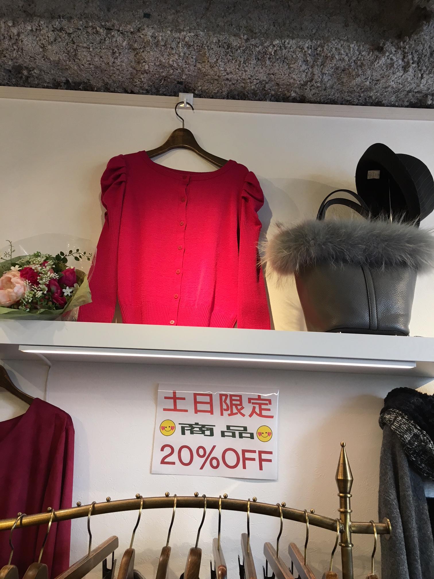 一部商品20%オフ!! いよいよ12月に突入!!パーティーや各種イベント、お仕事終わりにと忙しいかと思いますが、今日、明日限定で一部商品20%オフです😍💕😍 是非遊びに来てください!! 2017年12月2日