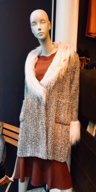 袖口と襟のラインに、毛足の長いファーをあしらったMADE IN ITALY💖のコートです!(*´∀`*)♪