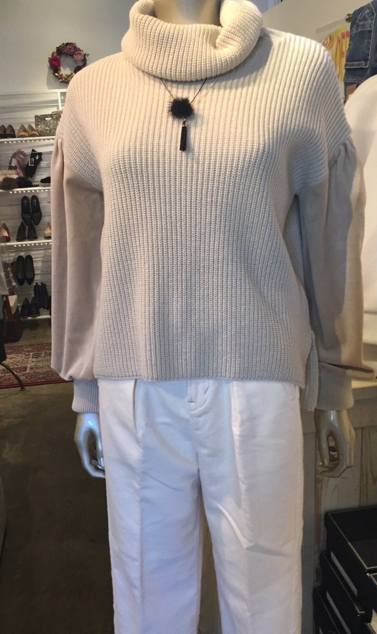 ニットも各種取り揃えております お袖がベロア生地になっている 大人可愛いタートルネックセーター! ニットは30-50%オフでご提供中です💖 お買い時の今、是非お店に遊びに来てください☺️😊😆😁😄スタッフ一同、皆様のお越しをお待ちしております。 2018年1月6日