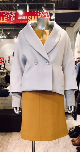 パターン切り替えスカート 早くも春の新作のスカートが入荷しました❣️(o^^o)✨✨ 異素材同士をいくつかのパターンで切り替えた、エレガントなフレアスカートです。😊💖 ニット ¥4,266- スカート ¥14,040- ブルゾン ¥9,072- 2018年1月21日