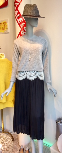 レース付きニット 裾にレースをあしらった、フェミニンなニットが入荷しました!😆💖 丈も短めで、パンツ、フレアスカート 、ガウチョ…etc. どんなボトムにも合わせやすいですよ〜(´∀`*)♪✨✨🌺 ほかに、ベージュ、ブラックがあります。 ニット ¥9,612- 2018年1月21日