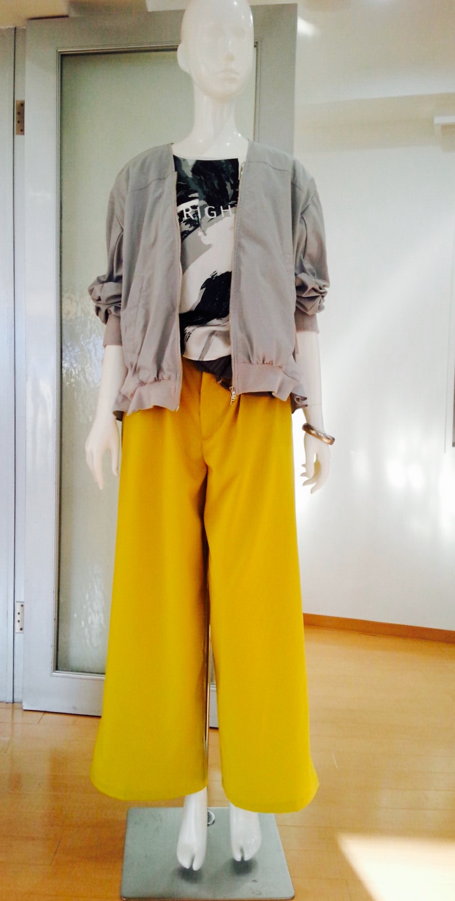 転写プリントのテイシャツとカラーパンツ イエロー 転写プリントが素敵なTシャツと、カラーパンツのコーディネートです エッジの効いた大人カジュアルです💓 パンツは、ネイビーやグレーも入荷します 3月の入荷になります 2018年2月10日