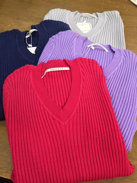 Vネックニット 4900円💓 女らしいVネックの上質なニットが、何と4900円です🌟🌟🌟 お色は、ライトグレー、ラベンダー、ヒューシャピンク、ネイビー、ブラック、イエローの6カラーです 2018年2月15日