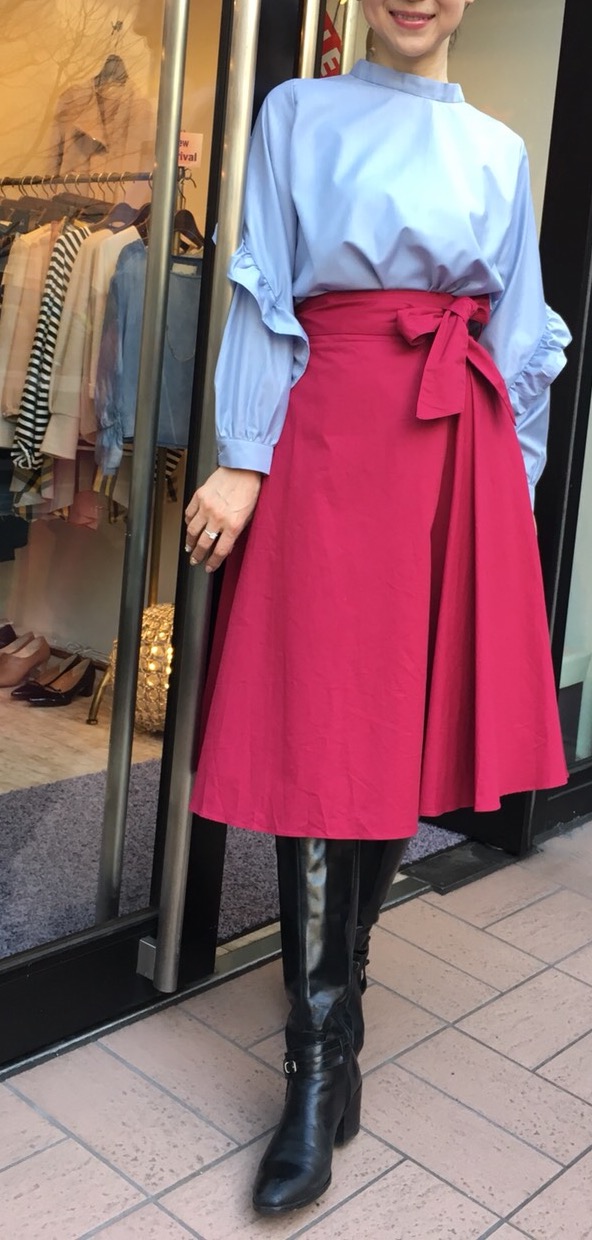 ピンクとサックスの組み合わせ💓 今年は、ピンクとサックスが気になる感じです💓 スタンドカラーとフリルがポイントのブラウスと合わせれば、何でも今年っぽくなっちゃうんだなぁーーーーーーー ブラウス 7900円 スカート 5900円 すべて 外税 2018年2月17日