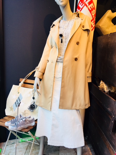 トレンチコート ¥18,144💖 リコノクローシェのコートやジャケット類はその軽さが自慢の1つなのですが、こちらのトレンチを軽いっ!!電車の中で脱いで手に持っても軽いからお邪魔になりませんよ👍おひとついかがですか??💖💖💖 トップス¥10,584 スカート¥9,676 コート¥18,144 2018年2月17日