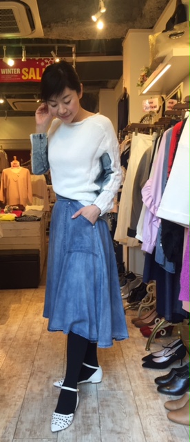 白ニットとデニムスカート カットデニムの素材と白のニットの配色がおしゃれなニットと柔らかなテンセルデニムスカートのコーディネートです 今はまだ寒いので、タイツにフラットシューズとかでも可愛いですよ💓🙌 2018年2月18日