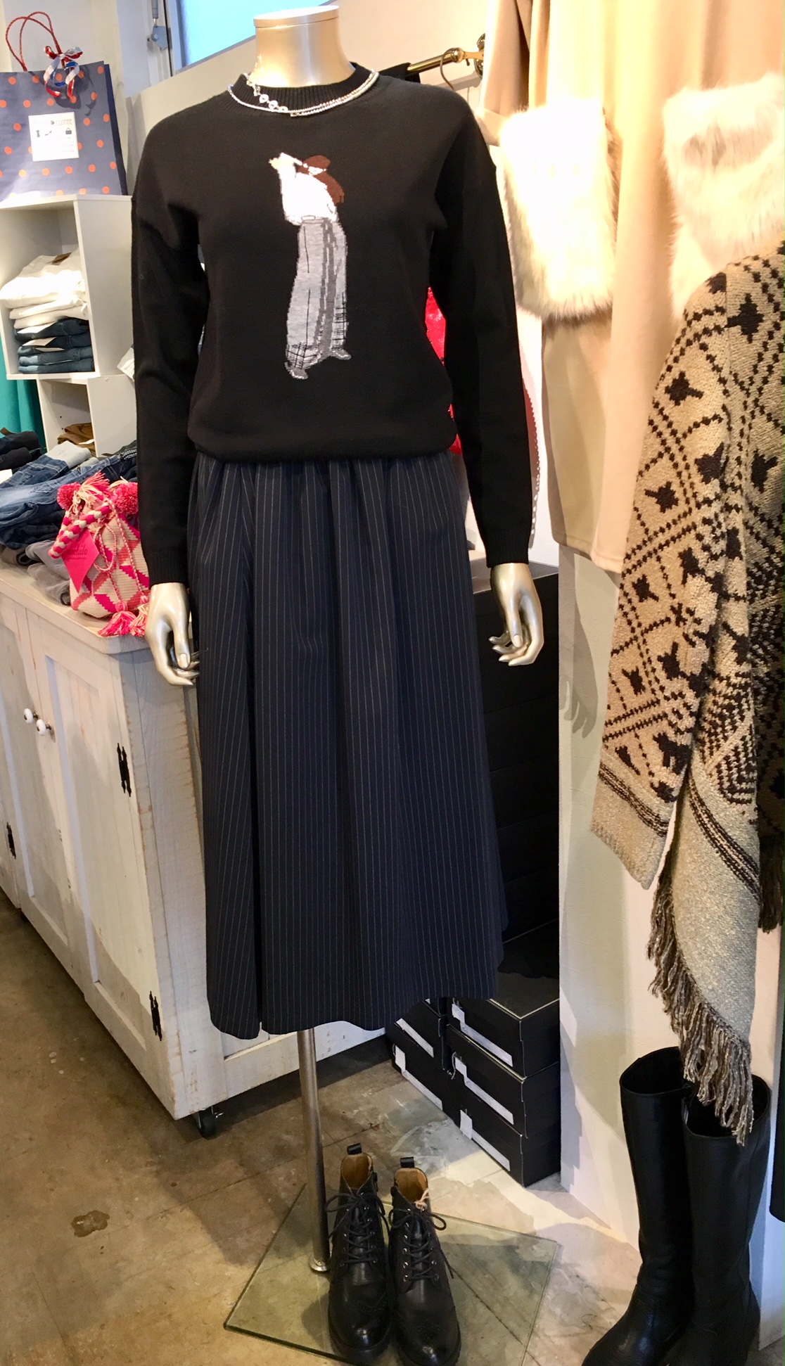 足元の本革のブーツもカッコ可愛いく