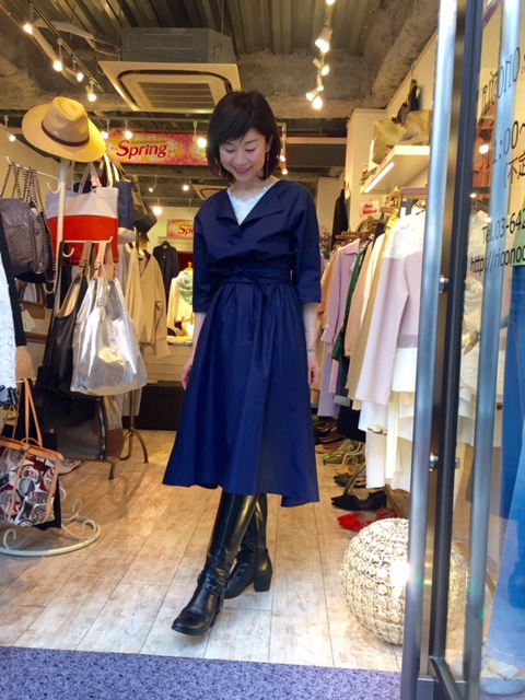 モテワンピース 9800円💓💓💓 艶のあるコットン&レーヨン素材のワンピースが大人気です💓お袖があって、着丈があって、大人女子には願ったり叶ったり💓 着痩せ感ときちんと感を兼ね備えた役立ちアイテム🌟 ベージュ、ネイビー、ストライプなど4カラー展開です 2018年3月10日