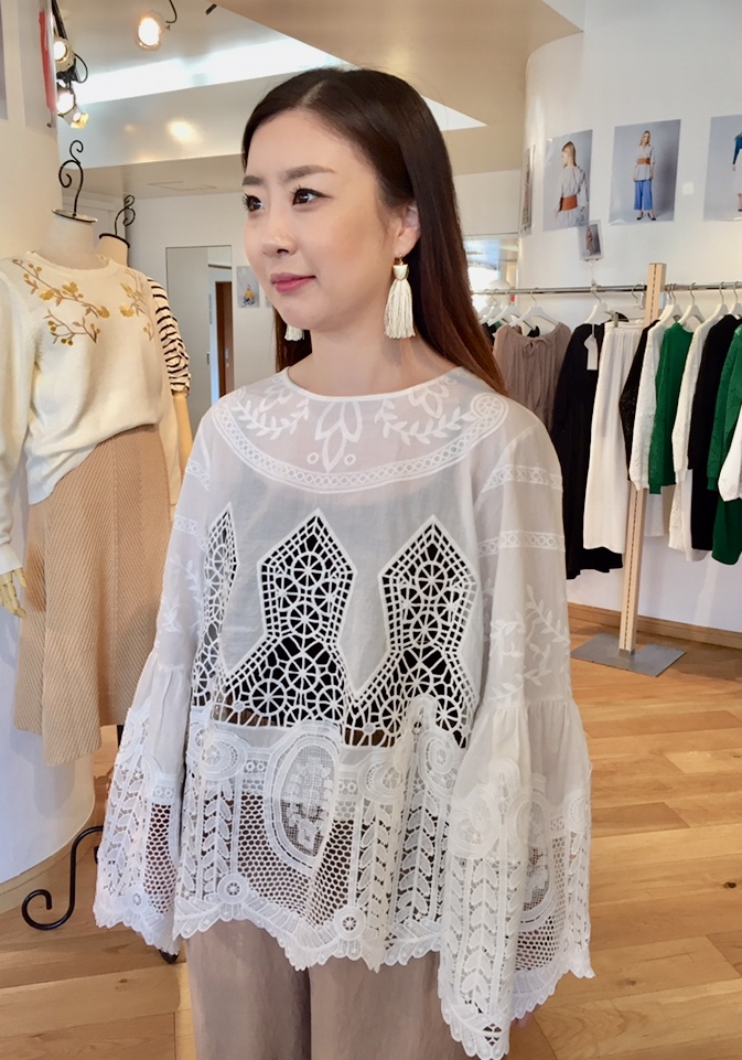白のコットンレースブラウス 大人気のコットンレースブラウスです💓 お家でホームクリーニングして、新品の仕上がりになるのは、クオリティの高い生地のおかげです😊💓 シックなブラックも入荷しております。 30日まで1000円オフ💓💓💓ですよぉ〜 お得なこの三日間をお見逃しなくーーー 2018年4月29日