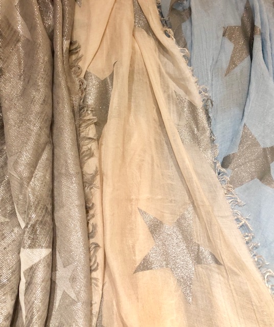 🇮🇹から輸入のストールです 5900円 おしゃれな星のプリントのストールが入荷しております💓😍 ペールトーンのカラーとメタリックなカラーの2種類です 春先の寒さと、夏の冷房対策に薄手のストールは必需品ですよぉ〜💓💓💓 2018年4月7日