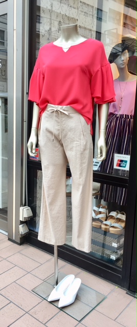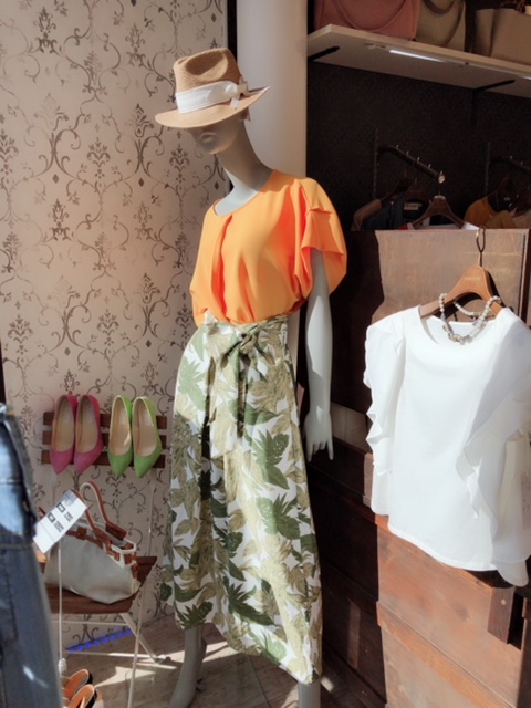 オレンジのブラウス 8900円 ビビットなオレンジのブラウスとボタニカルのワイドパンツはいかがでしょう? トロミ素材のトップスはとにかく女らしいシルエットがGOOD💓 洗って直ぐに着られるのも良いですよね? オフホワイトもございます😃 2018年5月13日