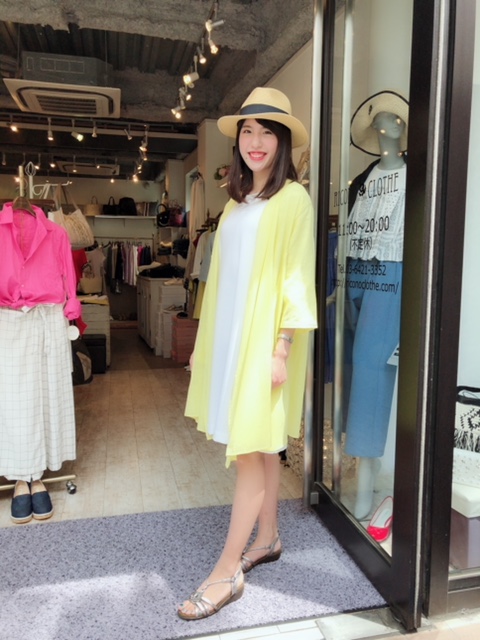 レモンイエローの羽織もの 13000円💓 初夏のアウターが沢山入荷いたしました💓 朝晩の冷え込みや、冷房、紫外線避けなど、、羽織ものは必需品ですよね。 こんな爽やかなカラーなら気分もアップしますよん😊🙌 みゆさんはお母様とリコノにお買い物に来てくださいました。白のレース使いのワンピースに合わせてコーディネートさせていただきました。 爽やかなカラーがとてもお似合いです💓 2018年5月13日