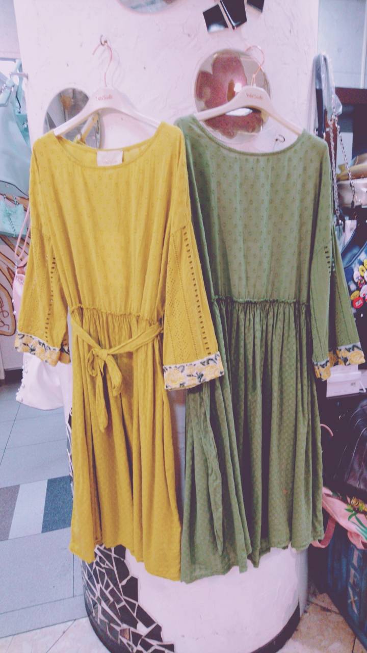 イタリアインポート ワンピース イエロー&グリーン ヨーロッパらしいコットンのカジュアルなワンピースが到着しました💓😍 サラッサラーの着心地です。 お袖のあるデザインのワンピースは嬉しいですねー💓 大人可愛いワンピースをぜひ一枚いかがでしょうーー 2018年6月2日