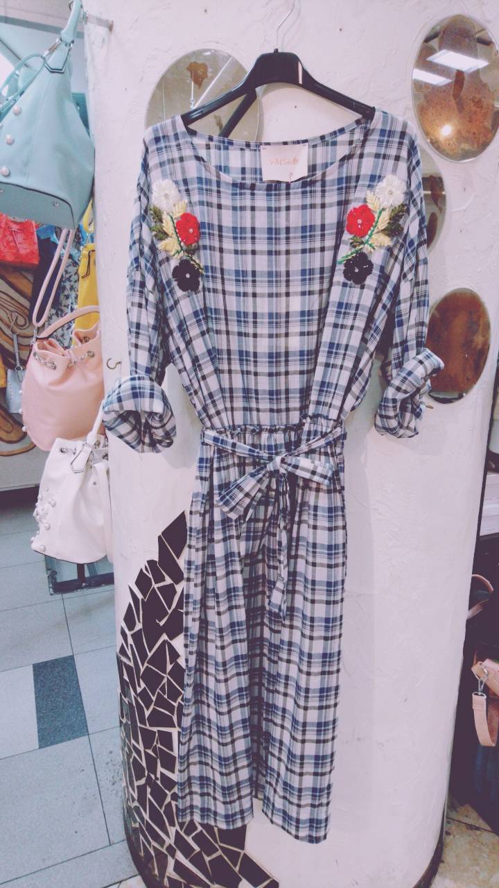 チェック&フラワーモモチーフのワンピース💓 こちらもインポートの一点もの💓 爽やかでトレンド感ばっちりのお洒落なワンピースです お素材は上質なコットン素材となります😍 おサイズはM〜Lとなっております 2018年6月2日
