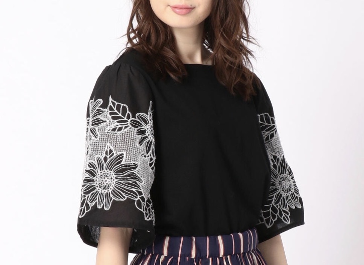 袖刺繍トップス 6372円 お袖に刺繍のデザインが入った 大変クオリティの高いカットソーのトップスです💓 ストライプのボトムスなどにもステキです💓 洗ってすぐに着られるお役立ちアイテムなので、忙しい貴女にぴったりのアイテム😍 お色違いで白もございます 2018年6月15日
