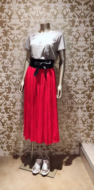 星のTシャツと赤いスカート💓 6372円 今年も出ました💓キラキラビジューの星のTシャツです😍 プチプラなのにこんな可愛い❤️ お写真のグレーの他に、ホワイト、ブラックの3カラーとなっております 赤いスカート 7452円 サッシュベルト 4212円 キラキラスニーカー 10584円 2018年6月19日