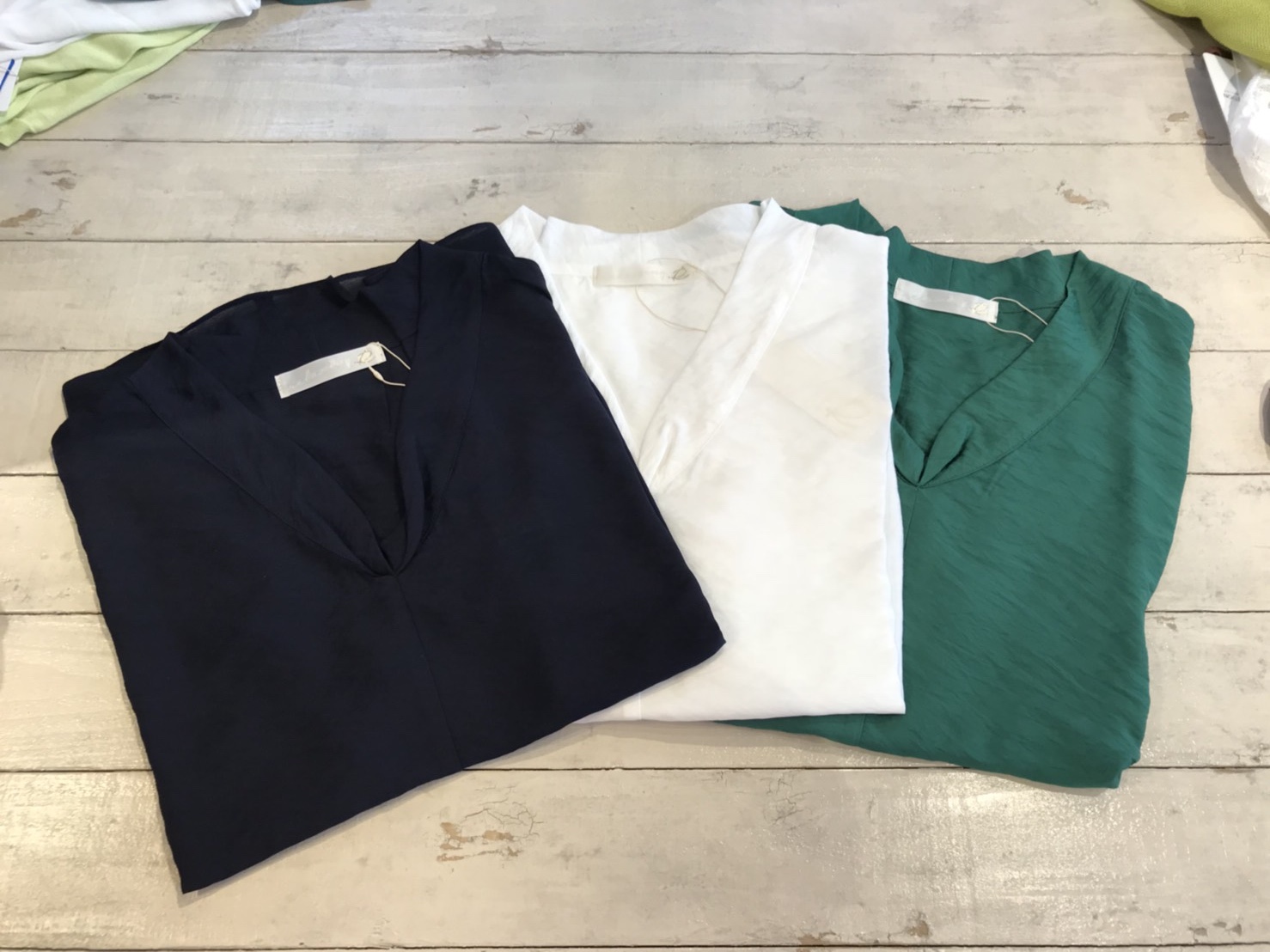 トロミブラウス💓 真夏に大活躍のトロミブラウスが入荷しました💓貴女の真夏を爽やかに過ごせるアイテムです😍 ヒューシャピンク、オフ白、グリーン、ブラックの4カラーです ブラウス 9612円💓 2018年6月19日