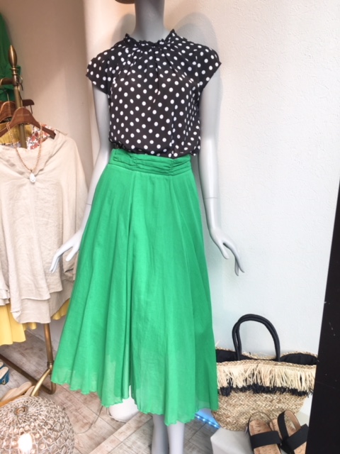大人可愛いドット柄💕シフォン素材で、メリハリのあるシルエットに😊