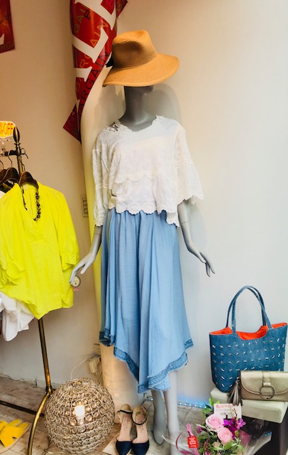 フリルトップス 5216円💓 シフォン✖️デニムのアシンメトリースカートとフリルトップス のコーディネートはいかがでしょう? スカートはお色違いのウォッシュデニムカラーもございます💓😃 真夏の涼しいデニムアイテムはお洒落度120%🎉 新作アイテムは、30型以上入荷しました。 ぜひ店頭まで見にいらしてくださいませーーー 2018年7月8日