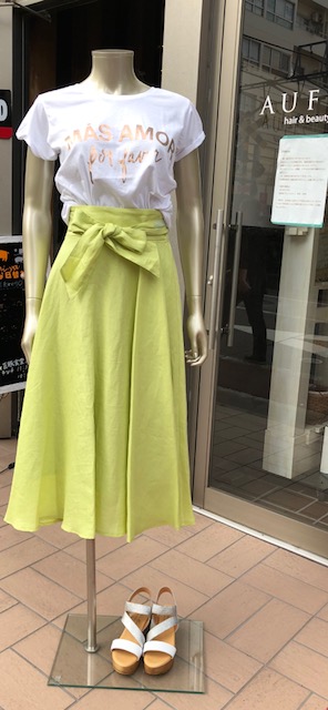 インポートTシャツ 4234円💓 イタリア🇮🇹から届いたお洒落な英字デザインTシャツと爽やかなリネンスカートはいかがでしょう? スカートはサックスブルーとネイビーもございます😍 とっても履きやすいスペインのサンダルはラスト一足です 24.5センチです 2018年7月9日