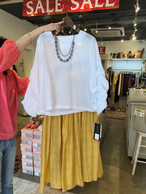 コットンブラウス 40%オフ💓 爽やかな薄ーいコットンのブラウスと、高級感のあるチェック織のポリエステルのミモレ丈スカートはいかがでしょうか? ブラウス、他にサックスブルー、ブラックもございます 本日は3点で更に10%オフになるので、とってもお買い得ですよぉ〜😃 2018年7月14日