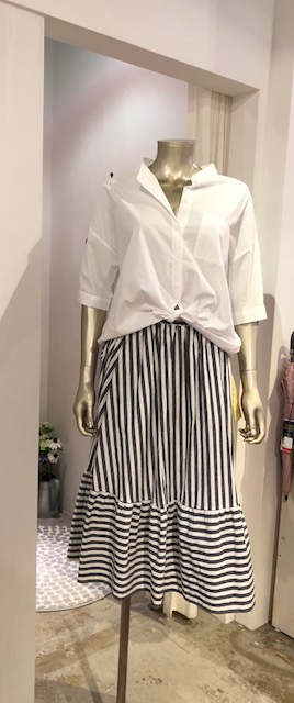 白シャツ とストライプスカート🇮🇹 シンプルな白シャツとストライプのティアードスカートをコーディネートしてみました💓 一枚でも透けにくいので安心なスカートです。 やっぱり万能な白シャツは今年も一枚ぜひおニューをゲットしてくださいませねーーー 2018年7月14日