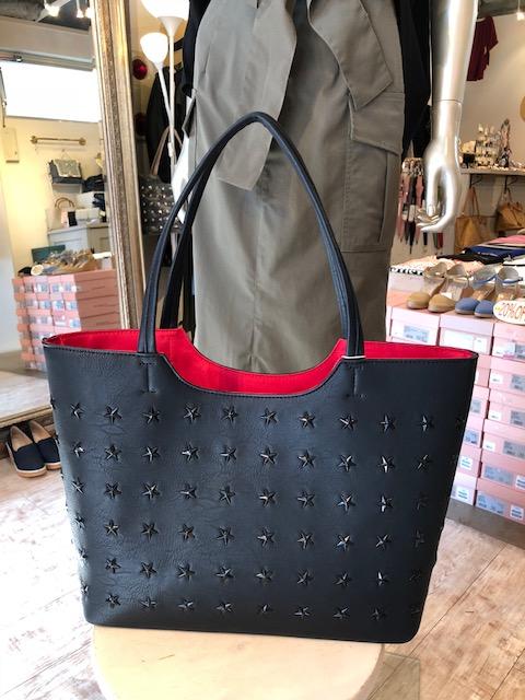 星のトートバッグ 5900円 💓外税 中が見えないように工夫された機能的なトートバッグです💓 カラーは他に、迷彩柄とガンメタのメタリックカラーがございます。 A4ファイルもサクッと入りますよぉ〜 2018年7月24日