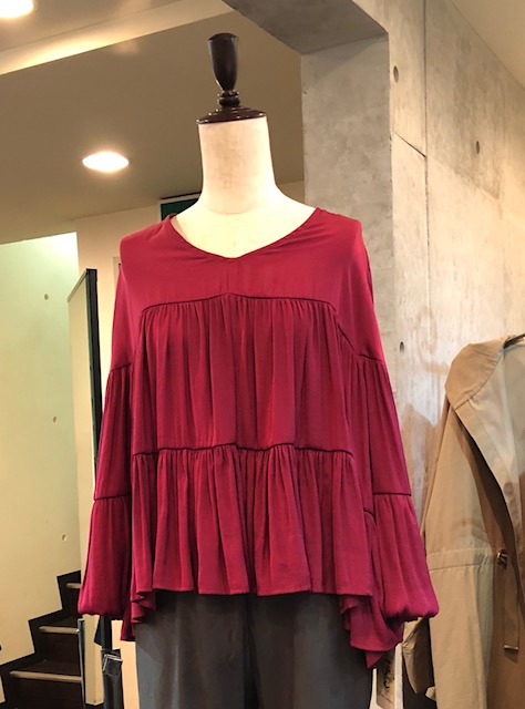 ワインレッドのブラウス💕 ベリー系カラーの筆頭💓ワインレッドの素敵なブラウスが入荷してきました🤗 サラッと軽いポリエステル素材なので、今からすぐに着られますよぉ〜👌 リップカラーもワインカラーでシックにコーディネートしても素敵です💕 2018年8月4日