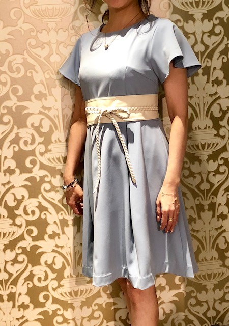 膝丈のワンピース サックスブルー💓 こちらはサックスブルーの膝丈のワンピースです💓 アイボリーの本革サッシュベルトでプリンセスラインの着こなしにコーディネートさせていただきました。 もちろんベルト無しでスッキリも着ていただけます🤗 小柄な方にもスッキリ着ていただけます 2018年8月5日