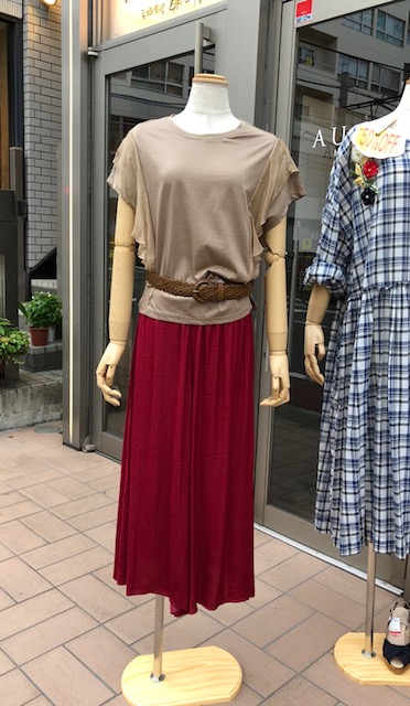 モカベージュ❌ワイン のコーディネート 猛暑を乗り切る秋色のコーディネートはいかがでしょう?💓😍 シフォンのボトムスはサラサラでとっても涼しい晩夏の新作です💕 ワイン、カーキブラウン、ライトグレーの3カラーです シフォンガウチョパンツ 7452円 2018年8月13日