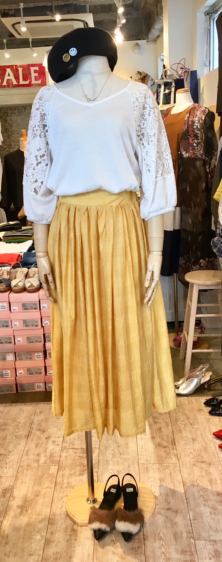 ファーサンダルと黄色のスカート 黄色いスカートのコーディネート 秋を意識してファーサンダルを合わせました💖 トップス¥5,972 スカート¥9,072 ファーサンダル¥11,880 2018年8月21日