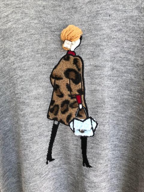 女の子モチーフニット💓💓💓 いつも大人気のインターシャのニットが、もうすぐ到着します💓🤗 レオパード柄のコートを着た女の子モチーフ💓 この立体感が堪らないのです💓 モチーフは、胸の位置になります 2018年8月29日