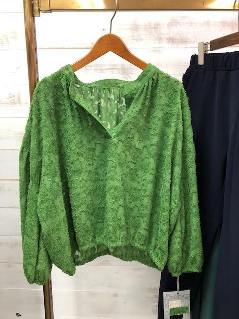 ジャガードスキッパーブラウス 11800円 立体感のあるジャガードの生地がとてもステキなスキッパーブラウスが今週到着します💕 カラーは、お写真のグリーンの他に、オフ白、ブラックの3カラーとなっております🤗💕 定番のウェストゴムの履きやすいテーパードパンツも入荷いたしますよぉ〜 2018年8月29日