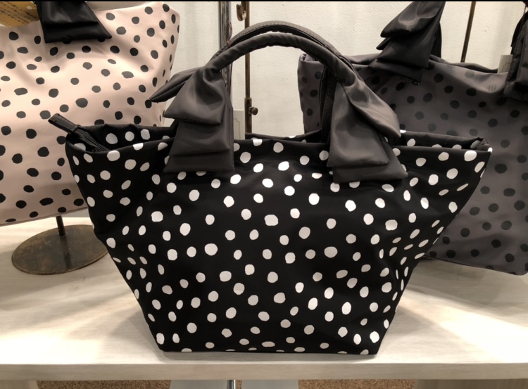 ナイロンドットプリント柄バック 5900円💓 今年人気のドット柄の使いやすいトートバックが31日の金曜日に入荷いたします💓 カラーはブラックとなります💓😃 展示会オーダーの一点ものとなります💕💕💕 2018年8月29日