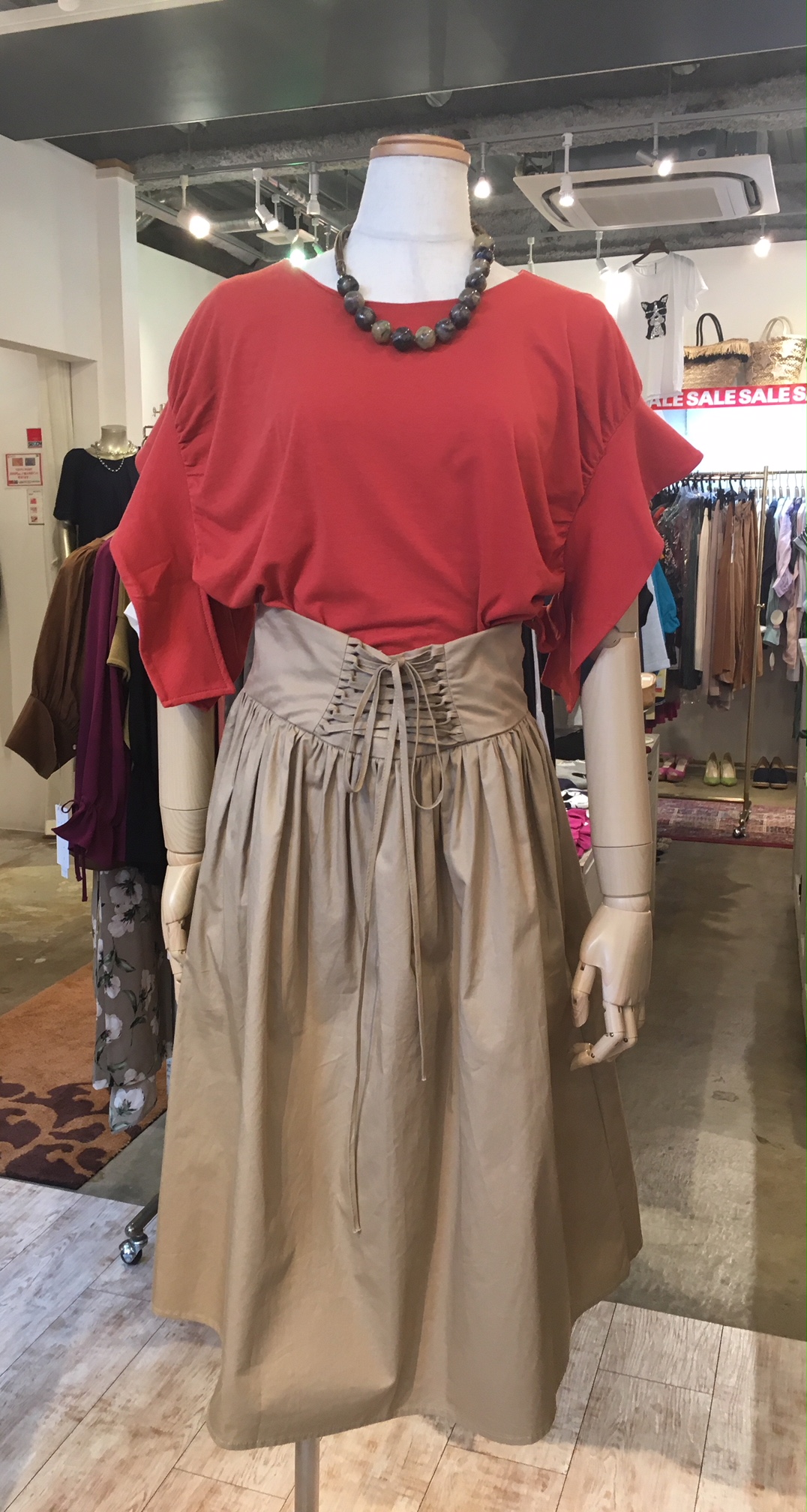 ウエスト編み上げ フレアスカート ウエストの編み上げがとってもキュート なフレアスカートです。 袖フリルのトップスと合わせて さわやかな中にも可愛らしさの漂う コーディネートです💖 トップス ¥9,612 スカート¥9,612 2018年8月29日
