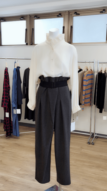スタンドのフリルブラウス💓 今年トレンドのスタンドフリルのブラウスはいかがでしょう?💓 ジャケットやコートの顔周りを華やかに明るく見せてくれますよぉ〜💓😃 ボルドーとチェックもございます👍 2018年9月30日