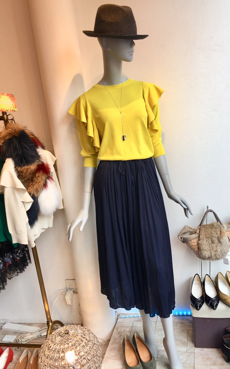 フリルニット 七分袖💓6900円 大人気の肩フリルニットの七分袖が入荷しました💓🤗 アイボリー、イエロー、ピンク、ブラックの4カラーとなっております フリルが小さめなので、ライダースジャケットの中にもスッキリ着られますよ🤗 2018年9月10日