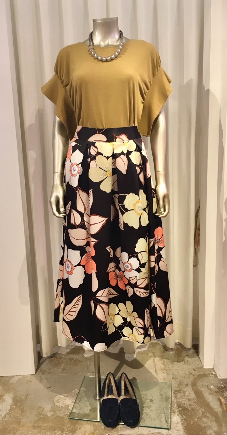 フラワープリントのフレアスカート 大きなフラワープリントのフレアスカートです。とっても華やかなので、トップスにはシンプルなお洋服でカジュアルダウンもしくはゴージャスな生地のもので、パーティー仕様にもなりますね💖 トップス¥8,900 スカート¥13,800 iPhoneから送信 2018年9月10日