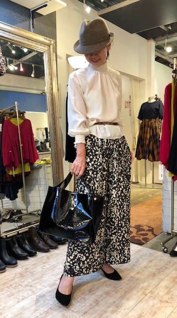 スタンドネックブラウス 9900円💓 今年らしいスタンドネックのブラウスが大人気です💓💓💓 とにかく、どんなボトムスにも合わせやすいのです⭐️ お色は、白、アイボリー、ブラックと、赤系チェックの4カラーとなっております ワイドパンツ 13000円 トートバック 5900円 2018年9月11日