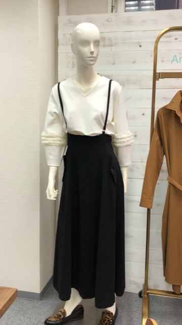 サスペンダーフレアスカート 15800円💓 伸縮素材のサスペンダースカートが入荷しました💕 サスペンダーは取り外しが出来ます👌 下半身をスッキリ見せてくれる優秀なスカートです💕💕💕🤗 やっぱり黒は使えますねーーー ゴミも付きにくいサラッとした生地ですので、安心です 2018年9月23日