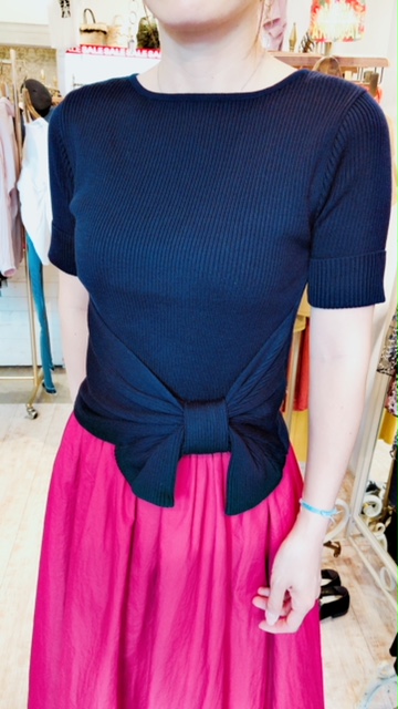 リボンニット 11000円💕 大人気の半袖のリブニットが追加入荷いたしました💕😃 お写真の茄子紺の他にピスタチオカラーもございますーーー お腹周りをスッキリカバーして着こなしがキマる優秀なデザイン⭐️⭐️⭐️ 着心地もバッチリです👍 2018年9月23日