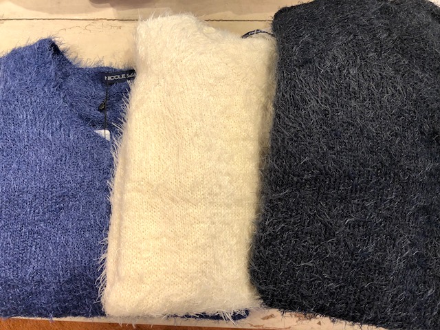シャギーニット 2900円💓 今週の特価品のふわふわシャギーニットはいかがでしょう? 驚きの2900円⭐️⭐️⭐️ 女らしいVネックがステキです💓 カラーはお色違いで、ホワイト、ロイヤルブルー、ネイビーの4カラーとなっております😊🙌 2018年9月29日