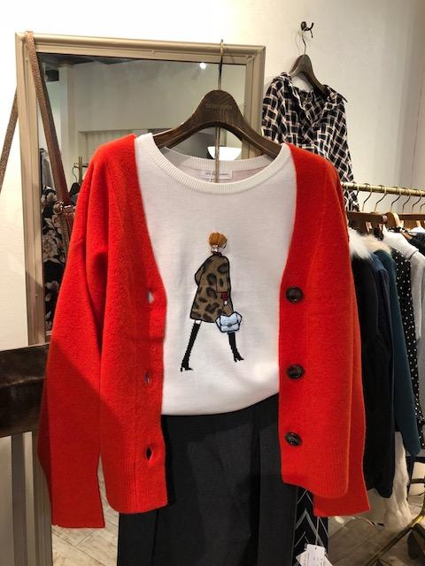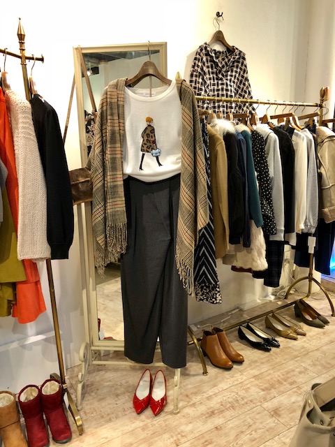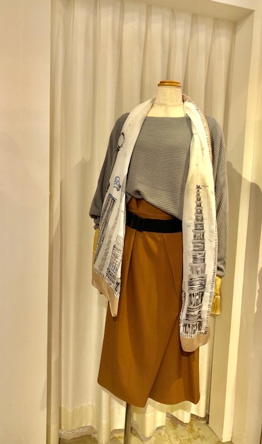 デザインニット 3900円⭐️⭐️⭐️ 横ボーダーの編み地がステキなデザインニットです💕😊 無地同士の組み合わせは、ちょっと地味なのでインポートのストール🧣でアクセントを入れました⭐️ ストールはアクセサリー感覚で室内でも首回りを彩ります💕 ニットのお色違いは、マスタードと、モスグリーンがございます 2018年10月3日