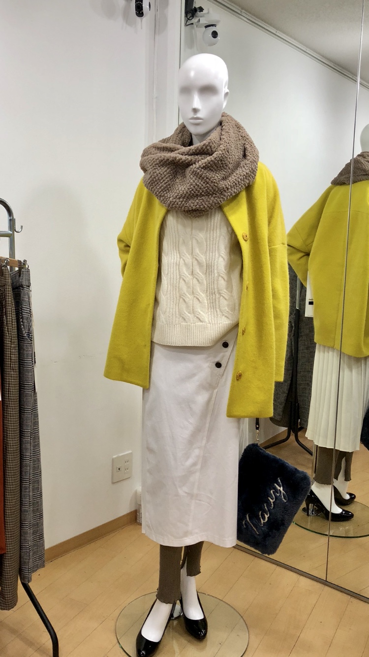 黄色のコート 💓💓💓 春を意識した黄色のカラーコートはいかがですか? 白のタイトスカートと合わせて、今時のレギンスを合わせると今年らしい感じにまとまります💓💓💓 こちらは、これから入荷致しますよぉ〜 2018年10月7日