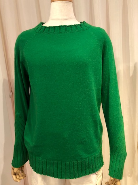 グリーンのニット 💓 鮮やかなグリーンが素敵なデザインニットです💓タップリ目のサイズ感で、細身のパンツにも合わせやすいです😃 他に、ターコイズブルーがございます💓😍 上質なニットなので肌触りもサラサラですよぉ〜 2018年10月7日